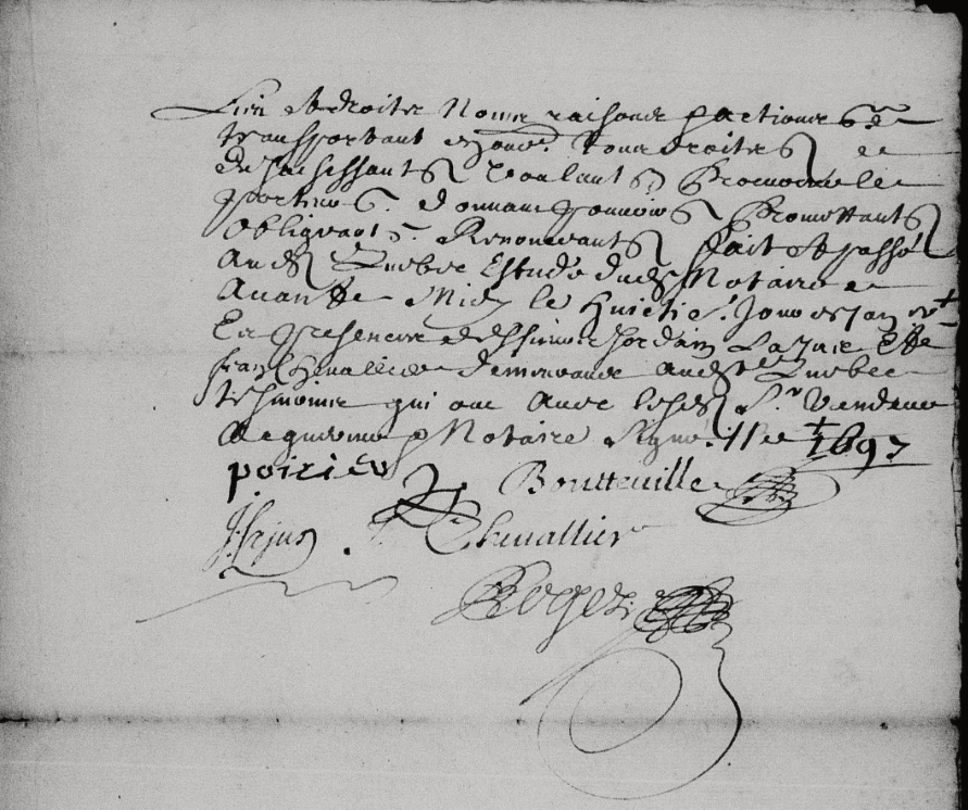 Marriage contract: Pierre Guilbault and Louise Senécal, September 30, 1667, Notary Pierre Duquet. Bibliothèque et Archives nationales du Québec
