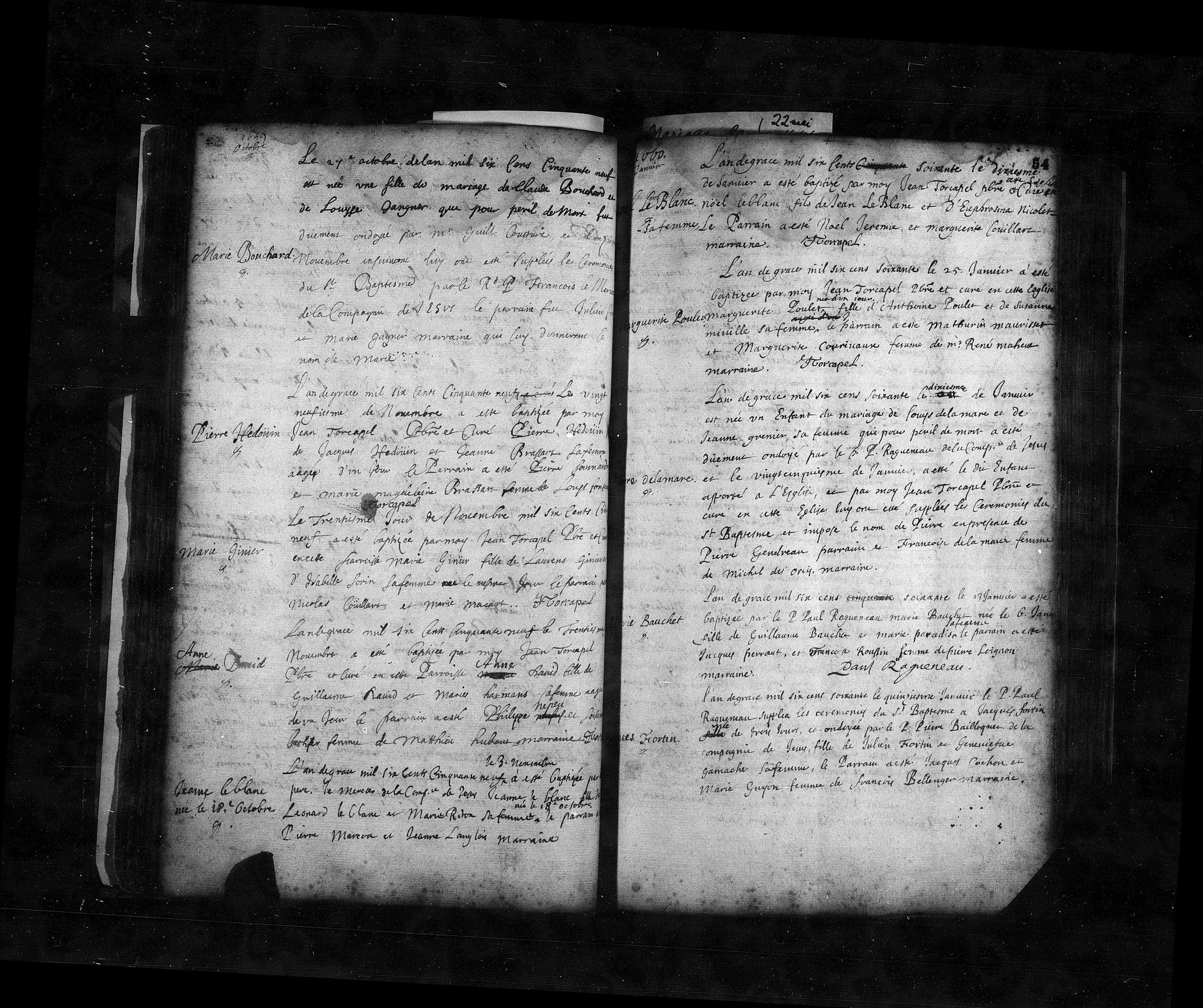 | Jeanne | Oct 18, 1659 | Nov 3, 1659 | 1675 Pierre Morel; 1704-1706 Jean Baptiste Baudy dit Laverdure |