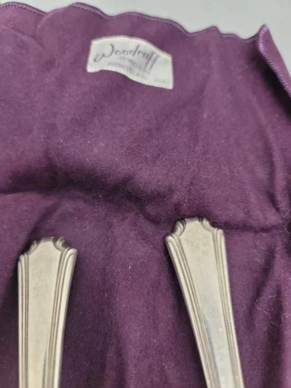 It gave him great satisfaction, and he enjoyed telling that story for years. The silver—still in its purple Woodruff Jewelers cloth bag—was inherited by his granddaughter.