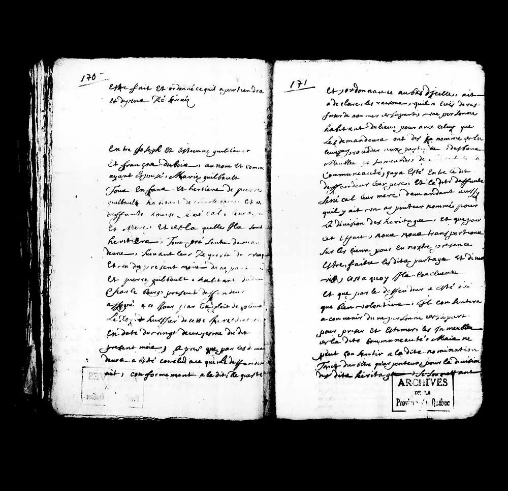 Imagine that scene: a judge and three arbitrators arriving at a Charlesbourg farmhouse in late winter 1697. Pierre Guilbault, 52, married to his new wife Françoise for less than two months. His three adult children, glaring at him across land their mother helped clear. Everyone standing in the February cold while strangers divided cows, fields, and buildings.