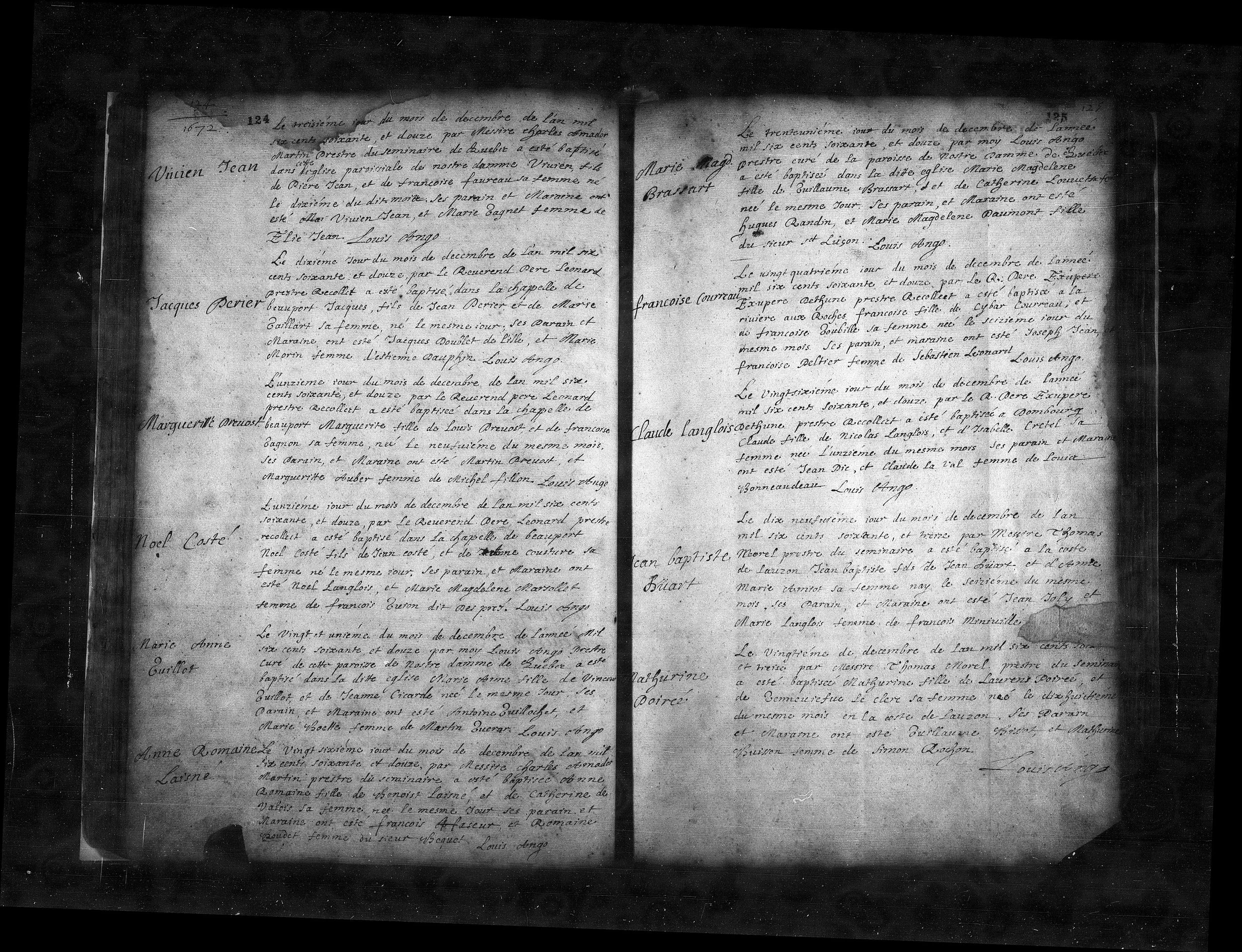"Canada, Québec, registres paroissiaux catholiques, 1621-1979," database with images, FamilySearch (https://familysearch.org : accessed 26 Jan 2026), Montréal, Notre-Dame, Baptêmes, mariages, sépultures 1642-1699; citing Archives Nationales du Québec, Montreal.