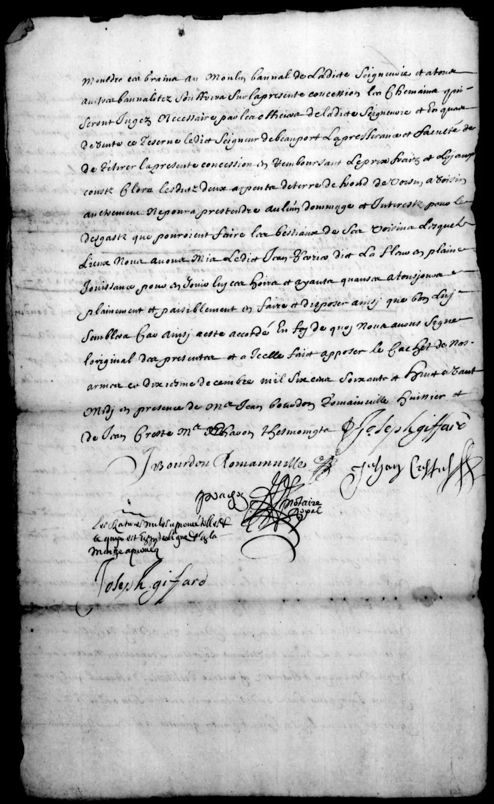Land concession, Joseph Giffard to Jean Perrier dit Lafleur, 10 December 1668, Beauport; Bibliothèque et Archives nationales du Québec.