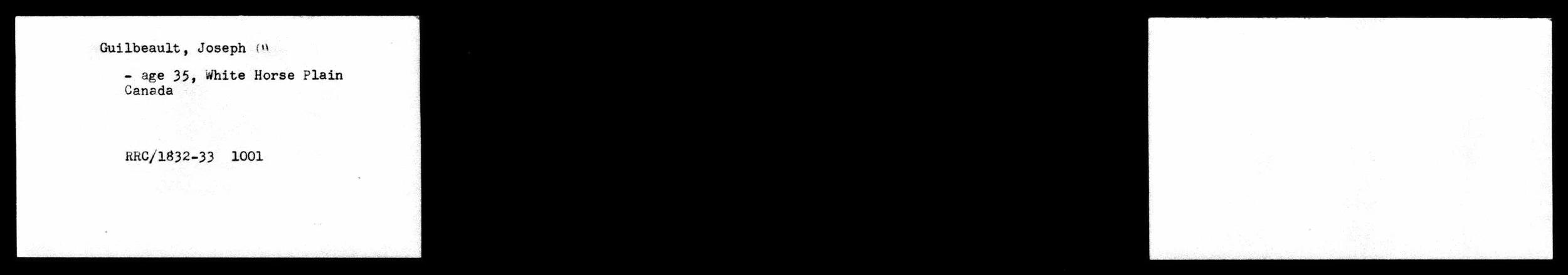 The Red River census entry RRC/1832-33, entry #1001, records: Guilbeault, Joseph — age 35 — White Horse Plain — Canada.