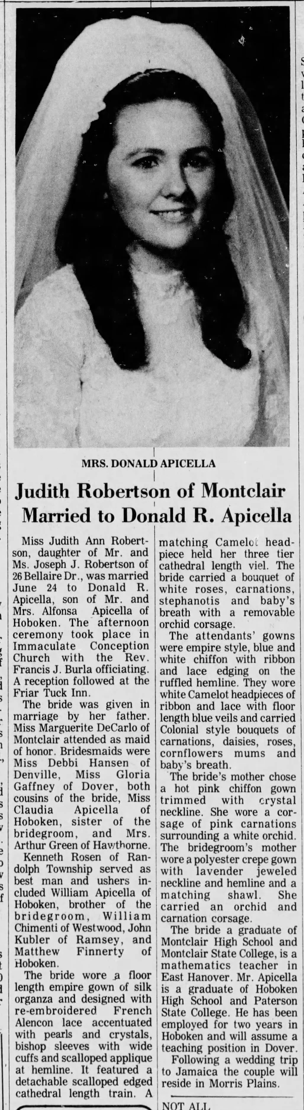 Daughter: Judith Ann Robertson (Apicella)